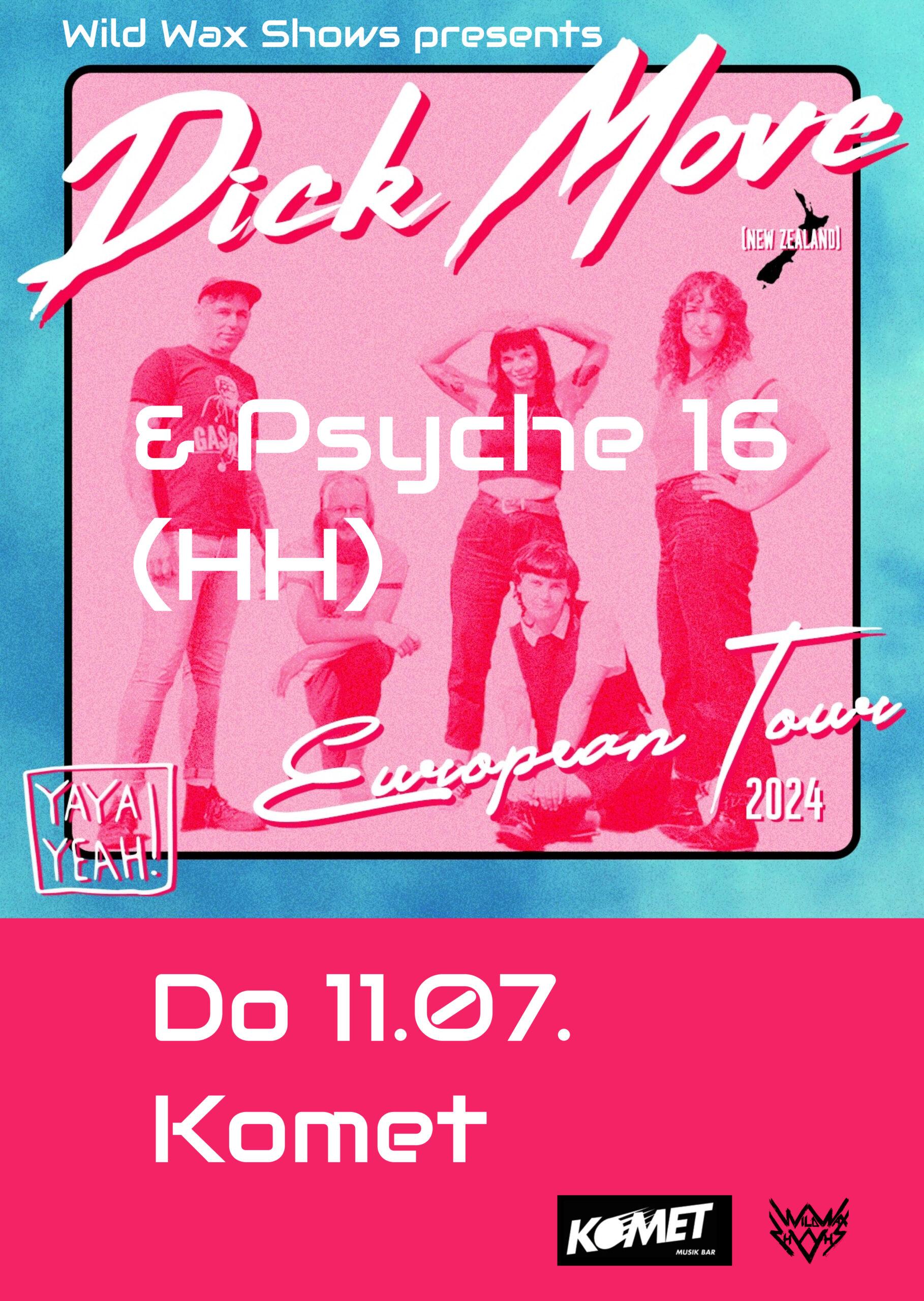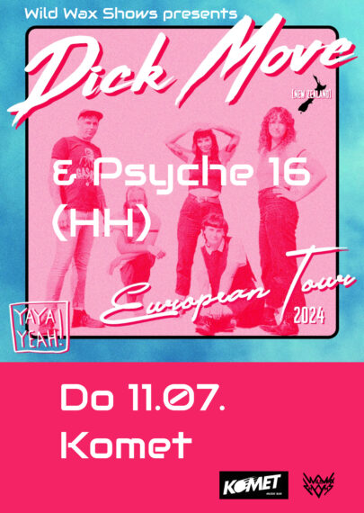 brash cheekiness and political angst. ‚Wet‘ is the band’s second studio release and makes a welcome addition to Dick Move’s catalogue. ‚Wet‘ follows on from their 2020 debut ‚Chop!‘! The 13 tracks on ‚Wet‘ were lovingly produced, recorded and mixed by Peter Ruddell (Wax Chattels, Sulfate) at The Beths‘ studio on Karangahape Road, and mastered by Wellington legend James Goldsmith. Maintaining momentum as socialist-party punk agitators is challenging to say the least, but Dick Move will keep doing what they do best; shouting across oceans from the bottom of the world about things that matter, in a thick kiwi accent.