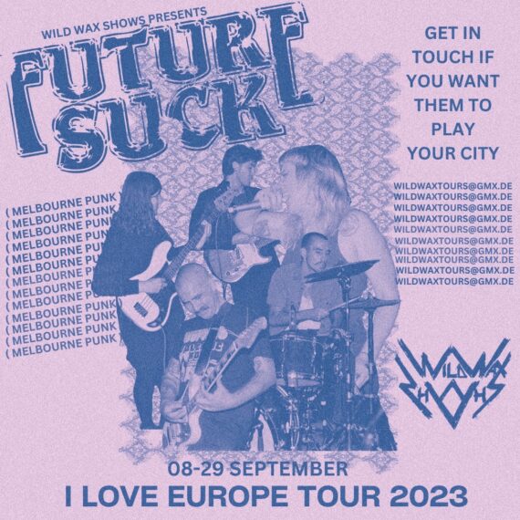 Furious rock and roll for furious people, Future Suck pummelled their way onto Melbourne’s music scene in the back end of 2019 with their rousing call to arms for jean jackets and naughty attitudes. Made up of members of Blonde Revolver, Super X, Carpet Burn and The Brakes, Future Suck’s sound is a potent mix of old school punk and hardcore and rock’n’roll.