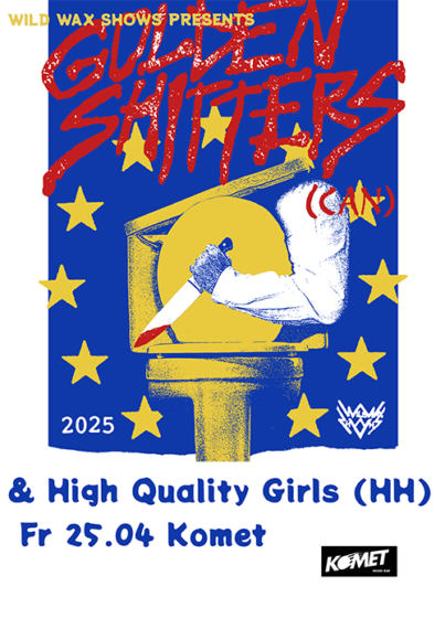 In a sea of trash, Golden Shitters stand alone. This three piece scuzz punk unit crawled out of the sewers of Hamilton, Ontario and features Matt Ellis (Anxious Pleasers and The Vapids), Dave Tyson (Sam Coffey and the Iron Lungs) and Kyle Fisher (the Dirty Nil). It’s punk rock with bad taste and a B-movie bathroom budget. The world’s going down the drain! Get flushed with Golden Shitters!